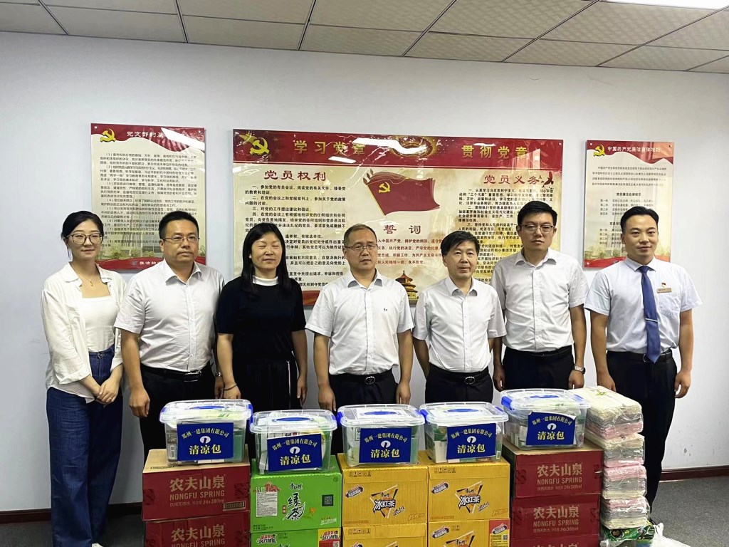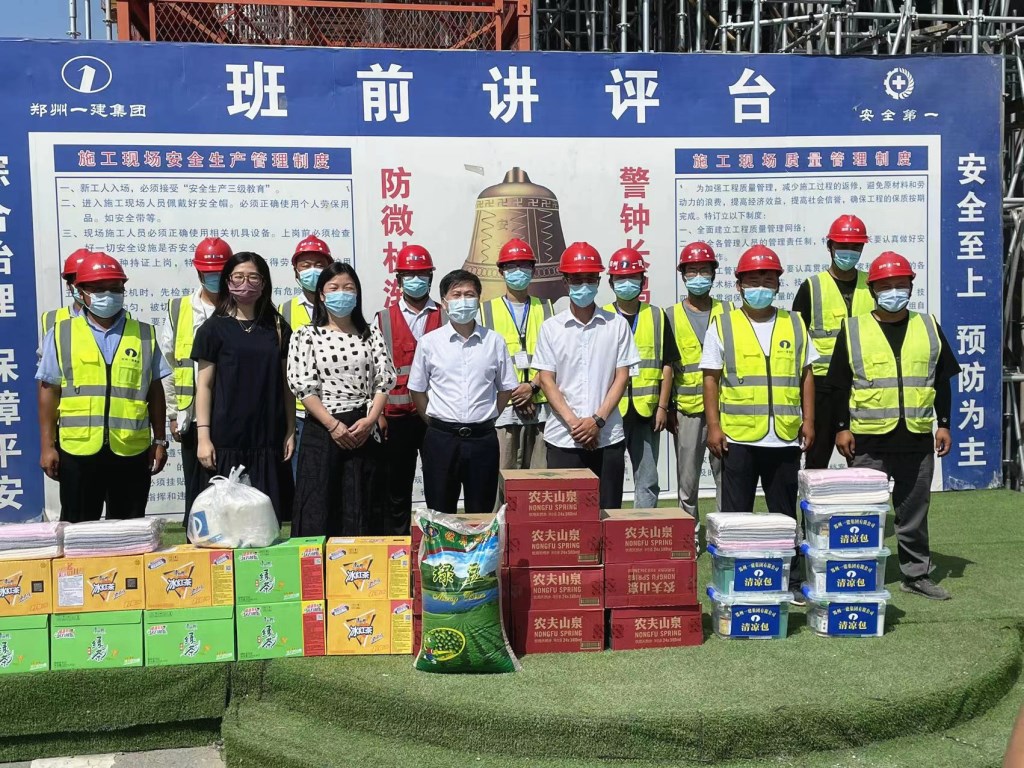受集团公司党委及董事会的委托,党群工作部按照集团公司防暑降温工作要求,集中采购了一批优质绿豆、白糖、清凉药品、矿泉水、凉茶、毛巾等防暑降温物品,由集团公司纪委书记、工会主席陈贤均、集团公司总经理助理、办公室主任刘福国带队率领党群工作部的同志顶着烈日、冒着酷暑先后对郑州市轨道交通6号线一期东北段、郑州市轨道交通8号线一期02标段、悦湖新著项目、东赵二期、彩虹桥第一标段、中储物流产业园、马庄安置区、富田兴和城十号院、凤阳中学、河南出版产业基地三期工程、书香雅苑等工地施工现场及租赁公司、物业公司、实峰检测公司、水电安装公司、洛阳分公司、鸿丰钢结构公司、开封鸿远产业园、劳务公司、置业公司、南阳分公司、设计院等共计22个单位进行了走访慰问,把防暑降温物品发放到酷暑高温中坚守在一线的员工手中,并与员工亲切座谈,向他们传达了集团公司领导的关心与问候。