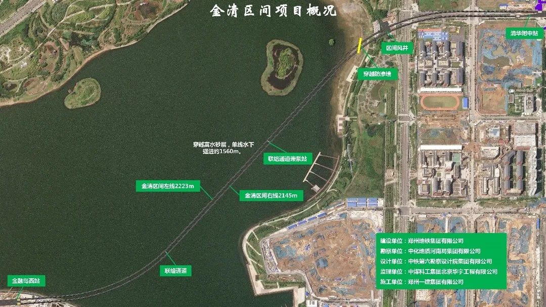 龙湖段区间(小营站到金融岛西站、金融岛西站到清华附中站)隧道全长7636米,盾构机在龙湖底累计穿越长度3894米;其中金融岛西站到清华附中站区间双向隧道长4369米,盾构机在湖底穿越长度达3135米。不仅是整个地铁6号线施工中的“卡脖子”工程,也是目前国内最长距离的下穿人工湖地铁隧道工程。