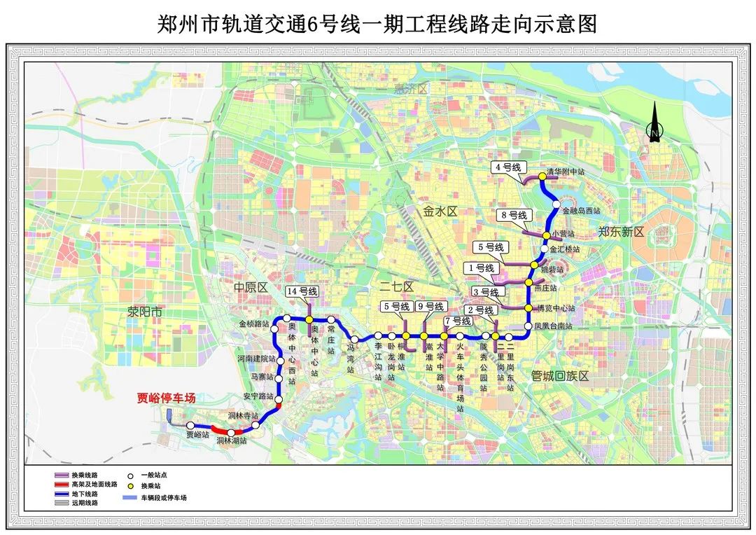 郑州地铁6号线西起荥阳市贾峪站,东至清华附中站,是郑州市西南—东北轴向的城市轨道交通骨干线。
